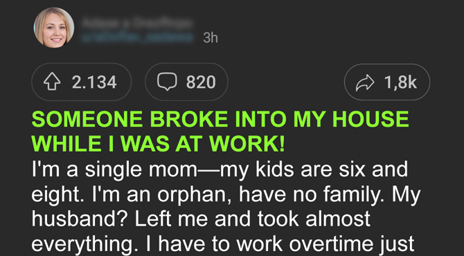 After talking to Sarah, I immediately called the police. No one was supposed to be home at that time, and no one had a spare key, so someone must’ve broken into my house.