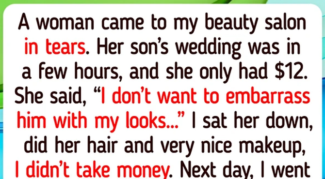 A woman came to my beauty salon in tears. Her son’s wedding was in a few hours, and she only had $12. She said, “I don’t want to embarrass him with my looks…” I sat her down, did her hair and makeup for free.
