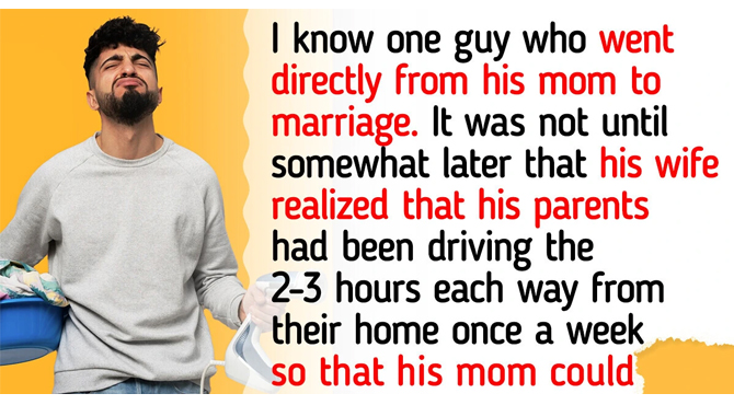 - I know one of these guys, and he went directly from his mom doing it to married. It was not until somewhat later that his wife realized that his parents had been driving the ~2-3 hours each way from their home once a week so that his mom could fill his fridge and clean the house while his dad mowed the lawn etc. Frankly, I give the parents some of the blame for that level of enablement. Upon divorce, the parents went back to doing all of this and more. © Hartastic / Reddit
