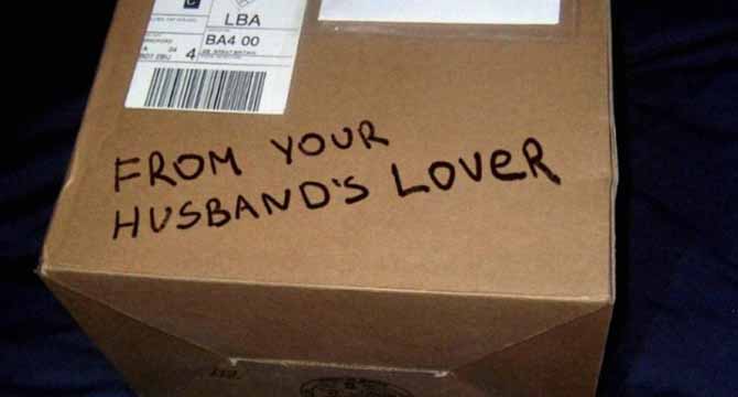 There, scribbled in red marker, were the words: “FROM YOUR HUSBAND’S LOVER!”