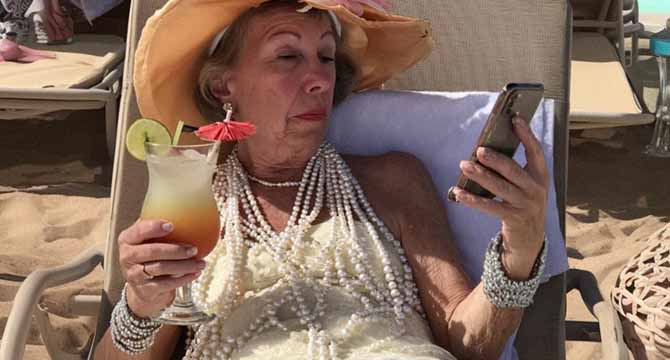 On day two, we were all out on the beach. Janet lounged beneath a wide umbrella like royalty, oversized sunglasses shielding her eyes and a drink resting in her hand.