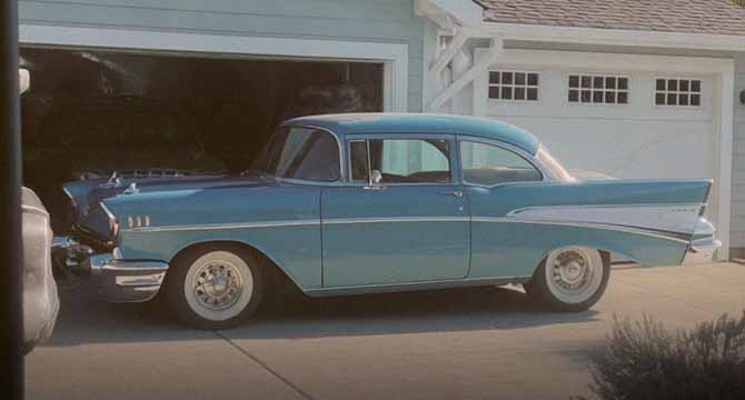 He yanked the tarp off the car like a magician revealing his trick. There it was — my old Chevy Bel Air. Faded blue paint, a few rust spots, but still beautiful to me.