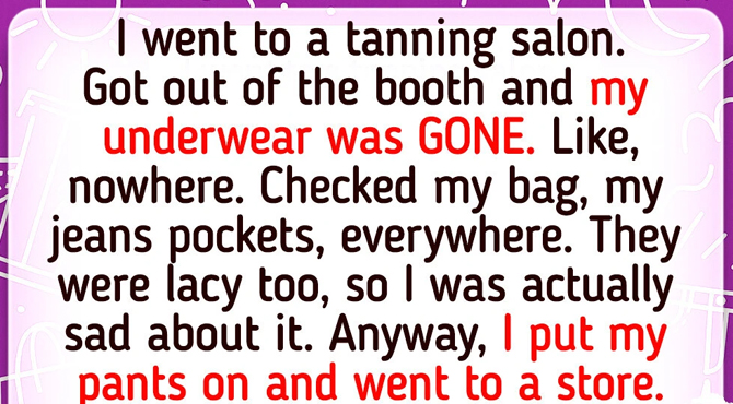 So I went to a tanning salon the other day. Got out of the booth, getting dressed… and my underwear was GONE. Like, nowhere. Checked my bag, my jeans pockets, everywhere. Nope. Nothing. They were lacy too, so I was actually sad about it. Anyway, I put my pants on, left super confused. Went to a store afterwards still thinking, “Where the hell are my panties?” And then it hit me. I had used them to tie up my hair inside the booth because I didn’t have a scrunchie. So yes… I walked around the street and into a store with lace panties in my hair. © Podslushano / Ideer