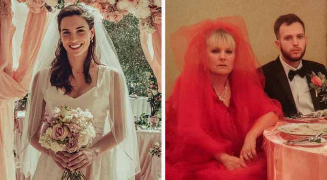 My mom put a hand over her mouth. “Absolutely not,” she said. “She did not show up in red with a veil.”
