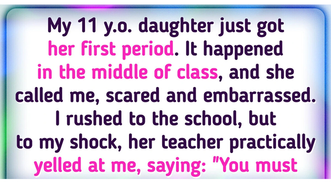 “My 11 y.o. daughter just got her first period. It happened in the middle of class, and she called me, scared and embarrassed. I rushed to the school, but to my shock, her teacher practically yelled at me, saying: ’You must have taught her better! Why didn’t you prepare her for this?’