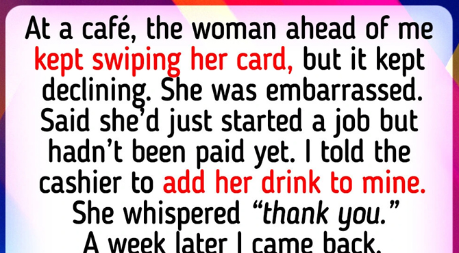 I was in line at a coffee shop when the woman in front of me kept swiping her card, and it got declined every time. She looked mortified and quietly told the cashier she’d just started a new job, but her first paycheck hadn’t hit yet. You could see the panic in her eyes. I told the cashier to add her drink to mine. She looked like she might cry and just whispered, “Thank you.” I thought that was the end of it. A week later, I stopped by the same café, and the barista handed me a free latte with a sticky note attached: “From the woman you helped.”