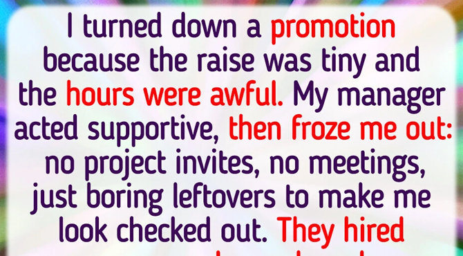 I said no to a promotion at work — politely. The raise was basically nothing, like “treat yourself to one extra coffee a week” small, but the hours? No remote days, no overtime, no life.