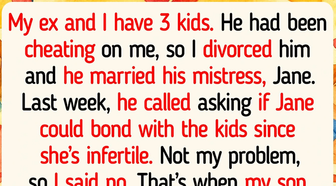 Then my son drops this bombshell: Jane had been showing up at their school a few times. Like, trying to pick them up or take them to lunch or whatever. Every time the kids refused. I called my ex. He admitted it was Jane who wanted to do this, so they could “bond” with the kids and get closer to her.