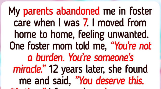 My parents abandoned me in foster care when I was 7. I moved from home to home, always feeling unwanted. One foster mom told me, “You are not a burden. You are someone’s miracle.” I never forgot that.