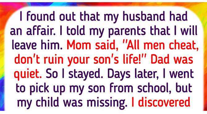 I found out that my husband had an affair. I told my parents that I would leave him. Mom said, “All men cheat, don’t ruin your son’s life!” Dad was quiet. So I stayed.