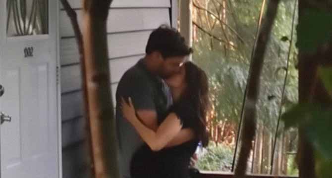 He kissed her on the cheek.