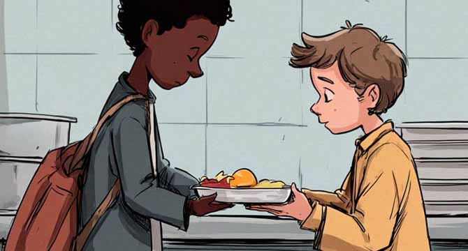 That first day at lunch, I was sitting with my usual group of friends when I noticed something that made my stomach twist. Evan was sitting by himself at a table in the corner, and he didn’t have any food in front of him.