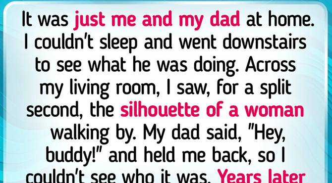 My mom and sister were on vacation, so it was just me and my dad at home. It was past my bedtime, but I couldn’t sleep, so I went downstairs to see what my dad was doing. As I’m going down, I see across my living room the silhouette of a woman walking by; I only saw it for a split second. So, my dad came running towards me, like, “Hey buddy, how’s it going, give me a hug!” He held me back, so I couldn’t get past him to see who it was. I was hysterical because I thought it was my sister, and they were playing a trick on me or something. My dad was quick to tell me, “Oh, you thought you saw a ghost! Let’s call your mom and tell her you thought you saw a ghost!” Years later, my mom finds out my dad’s been cheating, and now he’s married to her. © The-Lasso / Reddit