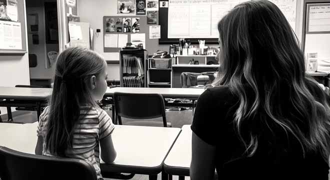 I walked out of the classroom, my mind racing. I saw Alice waiting quietly in the hallway. She looked up at me with wide eyes. I took her hand and led her to the car.