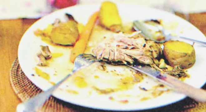 As he was passing, he noticed that one of the women was scraping the leftover steak from one of the dishes on a tray into a plastic bag tied to her waist under her apron. When she finished, she carefully rinsed the dish and placed it in the dishwasher.