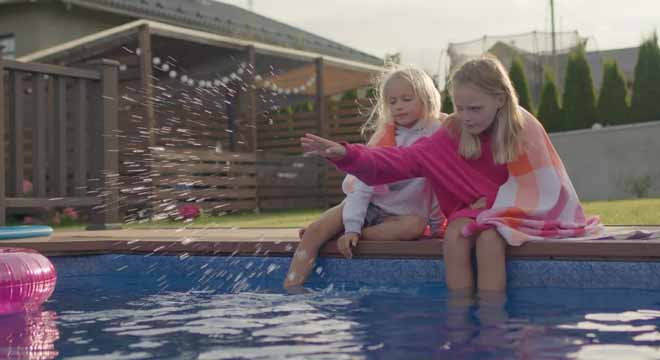 Ava and Lily fell into the pool, arms flailing, eyes wide with shock.