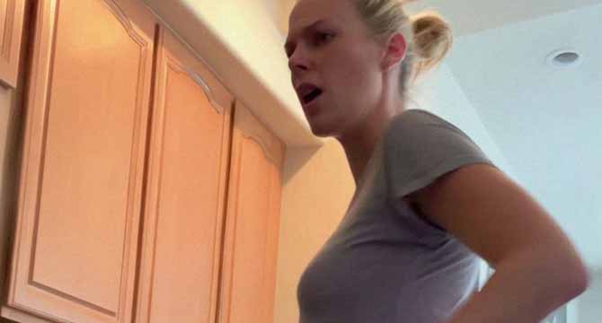 Tessa lifted her shirt just enough to expose her very real, clearly rounded belly.