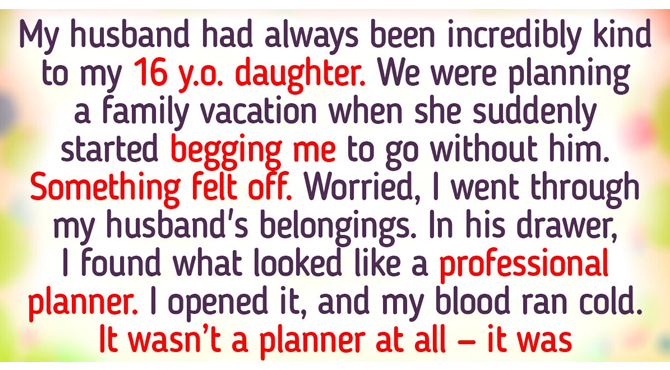My husband had always been incredibly kind to my 16 y.o. daughter. We were planning a family vacation when she suddenly started begging me to go without him. Something felt off. Worried, I went through my husband’s belongings.