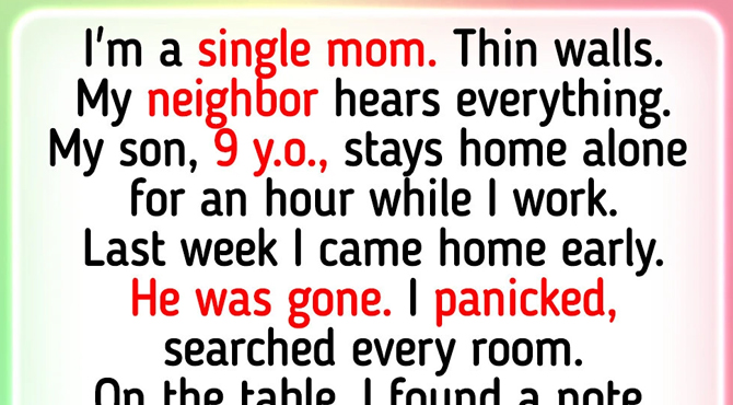 I came home early one day, and he wasn’t there. I panicked and searched every room before noticing a note on the table. My hands were shaking as I read it.