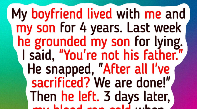 He snapped, “After all I’ve sacrificed? We are done!” Then he grabbed his things and left. I assumed he was just cooling off.