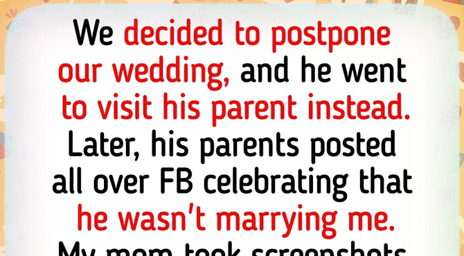 His parents posted all over Facebook that they were celebrating him not getting married to me and were celebrating his “new girlfriend,” a friend of ours he constantly told me not to worry about. My mom screenshotted all the Facebook posts, drove an hour out to where I was and said, “Hey, what are we going to do here?”