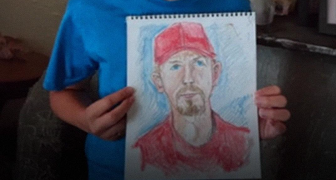 About six months ago, his pictures changed. He stopped drawing rockets and dinosaurs. Instead, he began drawing the same man.