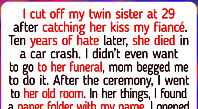 When my twin sister and I were 29, I caught her kissing my fiancé the night before my wedding. I cut her off completely, hated her, and blamed her for everything. We didn’t speak for 10 years.