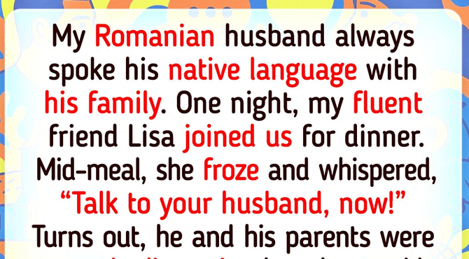 My Romanian husband always spoke his native language with his family. One night, my fluent friend Lisa joined us for dinner. Mid-meal, she froze, grabbed my arm, and whispered, “Talk to your husband, now!”
