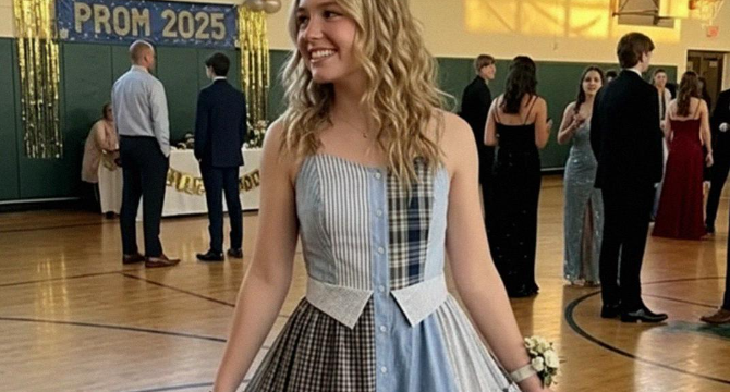 I Sewed a Dress From My Dad’s Shirts for Prom in His Honor – My Classmates Laughed Until the Principal Took the Mic and the Room Fell Silent