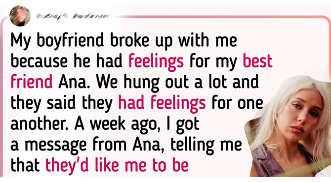 My boyfriend broke up with me because he had feelings for my best friend Ana. We hung out a lot and they said they had feelings for one another. They admitted that Josh had been cheating on me. They made a fool out of me. They made me think that everything was okay when it was really not.