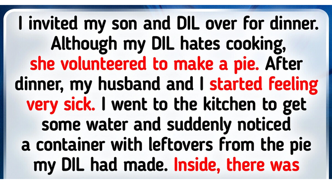 “I invited my son and DIL over for dinner. Although my DIL hates cooking, she volunteered to make a pie. After dinner, my husband and I started feeling very sick.