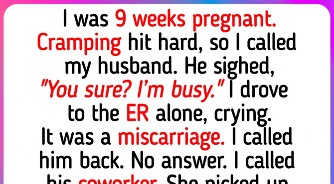 I drove to the ER alone, crying the whole way. The doctor confirmed a miscarriage. I called my husband three times. Nothing.