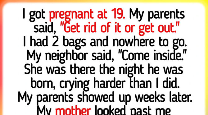 My neighbor, Mrs. Calloway, a retired teacher in her 70s whom I’d waved to maybe a hundred times but never really talked to, saw me sitting on the curb with my bags. She just said, “Come inside.” I stayed. She turned her sewing room into a bedroom. She was there the night my son was born, crying harder than I did.