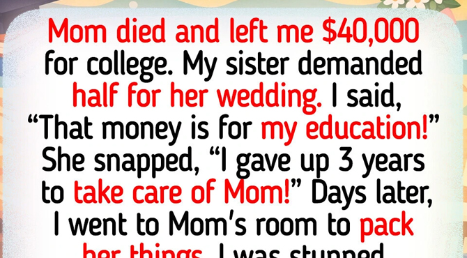 All that was left was the house and the $40,000 she had put toward my education. The cars were in my stepdad’s name, and the house my stepsister lived in also belonged to him, so my mom felt it was only fair for me to get what little she had left in her name.