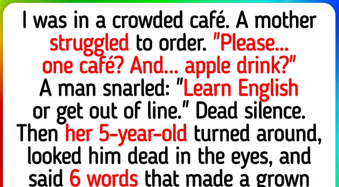Then she added, “My mom is learning English.” The man went pale and looked down. The barista smiled at the mom. “Take your time.”