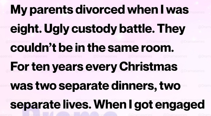Then I told my dad. He smiled in that proud, quiet way of his, squeezed my shoulder, and said, “I’ll be there. No matter what.” And that’s when I said it: “Same wedding. Same room. Same table. I’m not doing two of anything anymore.” They both hesitated, but I didn’t back down. “This is the one day I’m not splitting myself in half. If you love me, you’ll figure it out.” They didn’t argue. They didn’t agree either. They just… showed up.