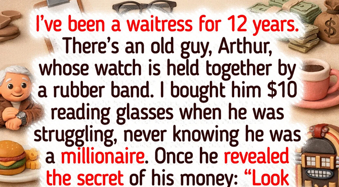 I’ve been a waitress at a diner for 12 years, and there’s this old guy, Arthur, who wears a watch held together by a rubber band. When I bought him a pair of $10 reading glasses because he was struggling, I had no idea I was helping a secret millionaire who owned half the town.