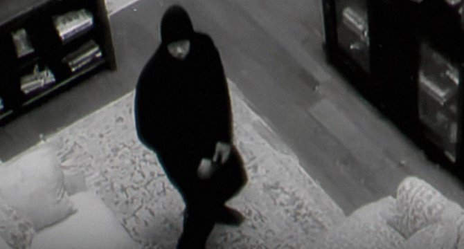 Pushing the door open just enough to see inside, I spotted a figure in black trying to bring down the tool shelf on the wall. A crowbar glinted in his hand. What was he planning to do with that?