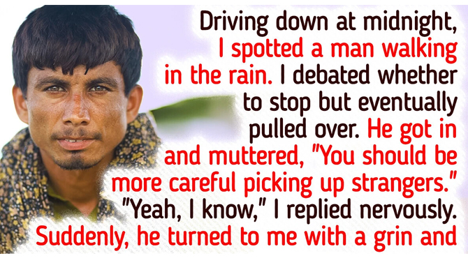 Driving down a deserted road at midnight, I spotted a man walking in the rain. I debated whether to stop but eventually pulled over. He got in, dripping wet, and thanked me. “Where are you headed?” I asked. “Just down the road,” he said, his eyes fixed on the windshield. We drove in silence. The radio buzzed with static. After a few minutes, he muttered, “You should be more careful picking up strangers.” “Yeah, I know,” I replied nervously. Suddenly, he turned to me with a grin. “But not tonight. You’re safe.” That man turned out to be a very kind and good person who was simply going through tough times. I’m glad I helped him back then.