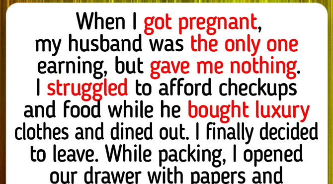 When I got pregnant, my husband was the only one earning — but he gave me nothing. I struggled to afford checkups and even basic food while he bought luxury clothes and dined out like nothing had changed. Eventually, I decided to leave. While packing, I opened the drawer where I kept my documents — and my blood froze. Hidden inside were legal papers issued in my name. I had recently inherited my mother-in-law’s apartment in the city center, along with enough money to raise my child without fear of poverty. She had visited us just a month earlier. Two weeks later, she passed away. She must have placed the documents there herself, among my ID and medical papers, knowing I would find them when I needed them most. She understood exactly how her son treated me. She never argued with him openly, but quietly made sure I would have a way out — a chance to live with dignity instead of dependence. Now I live in her apartment, preparing for divorce and waiting for my baby’s arrival. The person I least expected kindness from became my guardian angel when I needed one most.