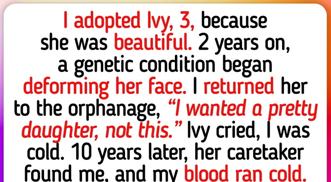 One day, I returned her to the orphanage. “I wanted a pretty daughter, not this,” I said coldly. “She’s not a beauty — she’s a tragedy.” Ivy cried, calling me Mom, begging me to stay.