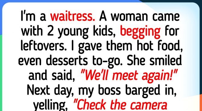I’m a waitress. A woman came with 2 young kids, begging for leftovers. I gave them hot food, even desserts to-go. She smiled and said, “We’ll meet again!” Next day, my boss barged in, yelling, “Check the camera footage!” I saw myself handing out the food — but also the woman discreetly slipping something under the napkin holder before leaving. My boss zoomed in, speechless. It was a folded check. Enough to cover a full month of the restaurant’s supply costs. On the back, in neat handwriting: “For the girl with the kind heart — make sure she’s taken care of.” I almost collapsed… 3 days later, the woman walked back through that same door — this time without the kids, dressed sharply, smiling like she already knew how the story ended. Turns out she was a well-known social media personality who regularly showed up unannounced to businesses, dressed plainly, specifically to see how ordinary people treated those who appeared to have nothing. She sat in my section, ordered coffee, and when I brought it over she looked up and said quietly, “I told you we’d meet again.” I had to grip the tray to keep my hands steady. My boss gave me a raise that same afternoon. But what moved me most wasn’t any of that — it was realizing that one small, genuine act of kindness, done with zero expectation, had brought the most unexpected person back to my table. Literally.
