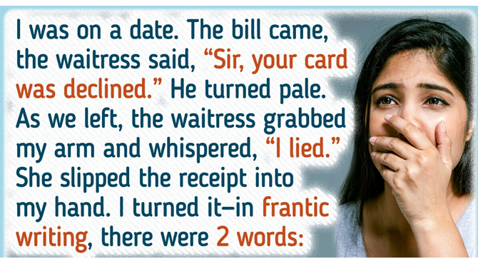 I was on a date, and he was so sweet. When the bill came, the waitress looked at him and said, “Sir, your card was declined.” He turned pale. I smiled and paid. As we left, the waitress grabbed my arm and whispered, “I lied.” Then she slipped the receipt into my hand. I turned it over—and in frantic handwriting, there were 2 words: “Google him.” The moment I got home, I searched his name—and my blood ran cold. He was a fraud. Apparently, he had a pattern: he would date women, gain their trust, and then start stealing from them. He had been in prison multiple times for theft, mainly from his previous jobs. One of his ex-girlfriends had even written blog posts detailing every step of their relationship, including how they met—and it was eerily similar to how he had approached me. I couldn’t be more grateful to that waitress. Her courage, kindness, and quick thinking saved me from something terrible. I realized she had staged the declined card incident just to have an excuse to slip me that message. She didn’t just serve a meal that night. She served a warning.