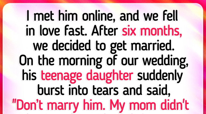 I met him online, and we fell in love fast. After six months, we decided to get married. On the morning of our wedding, his teenage daughter suddenly burst into tears and said, “Don’t marry him. My mom didn’t cheat on him. She left because he cheated on her—with you.”