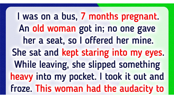 While leaving, she slipped something heavy into my pocket, and whispered in my ear, ’’Always put yourself and your child first! Otherwise, your life will be as heavy as this!’’ Then she quickly stepped off the bus.