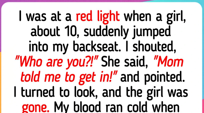 I was waiting at a red light when a girl, about 10, suddenly jumped into the backseat of my car.