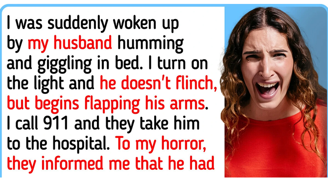 I was fast asleep, and was suddenly woken up by the sound of loud hums broken by giggling. I look over, and there’s my husband, in some kind of trance, humming and giggling in bed. I shake him. No response. I turn on the light, and he doesn’t flinch, but begins flapping his arms.