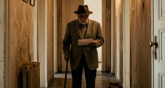 An elderly man stood on my porch beneath the weak yellow porch light. He wore a charcoal overcoat, and his lined face looked drawn with exhaustion. In one trembling hand, he held an envelope, yellowed with age.